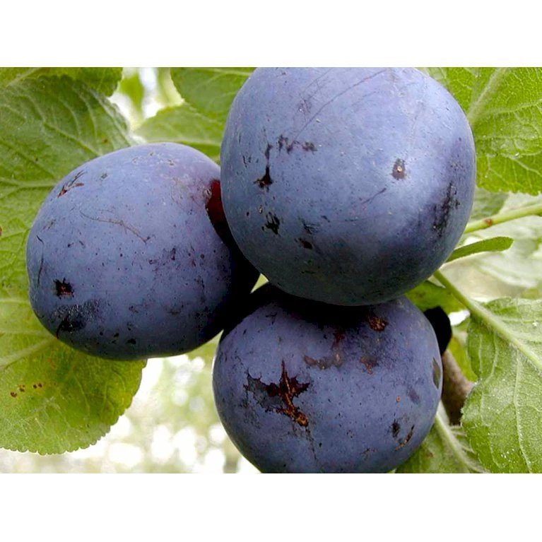 Frugten: Lille, oval, blåviolet m. tyndt skind. Saftig lysegult frugtkød. Anvendelse: Fra midten af aug. God til husholdningsbrug. Vækst: Svag m. stive grene, der danner opret krone. I øvrigt: Selvbestøvende, hårdfør og rigtbærende.