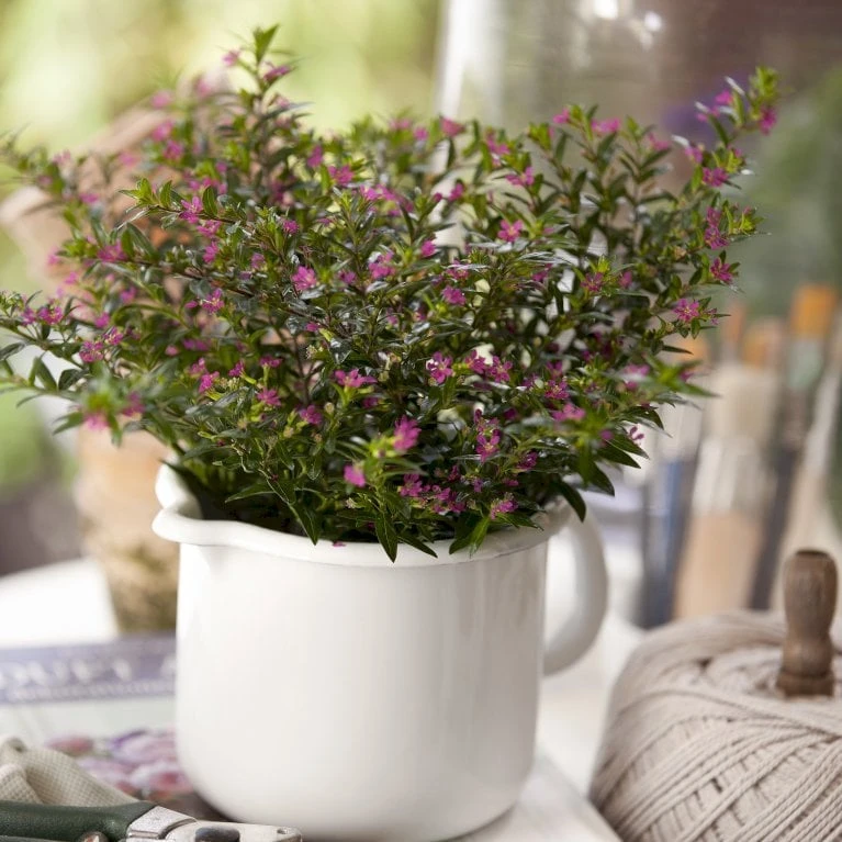 Trives bedst i direkte sol. Smukke, små rosa blomster med skønt grønt løv.