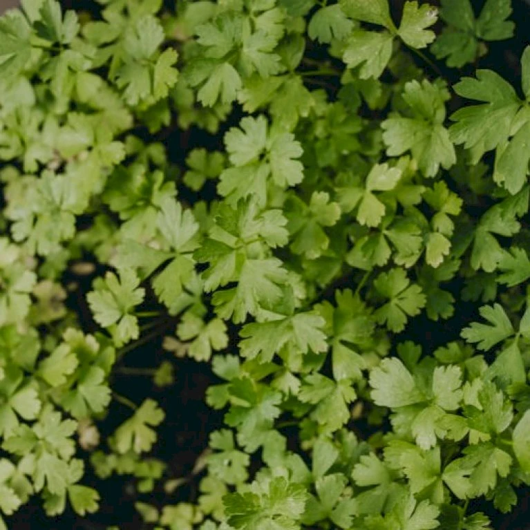 Bredbladet persille har en kraftigere smag end den normale kruspersille.