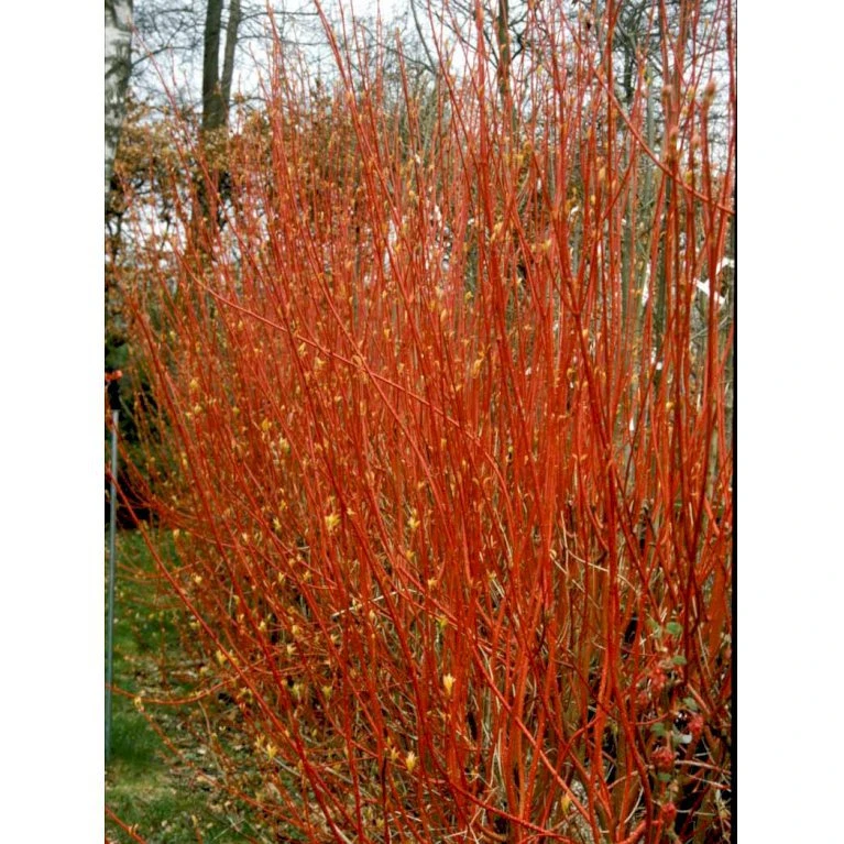 Unge grene har glat og blank rødbrun bark, som i vinterhalvåret er meget kraftigt rød.